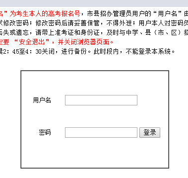 1、考生用戶的“用戶名”為考生本人的高考報(bào)名號(hào),市縣招辦管理員用戶的“用戶名”由省招辦統(tǒng)一編發(fā)。