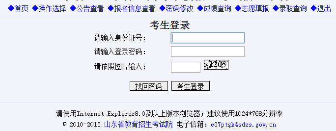 本平臺是考生參加山東省普通高校招生各類統(tǒng)一考試的報名、成績查詢、志愿填報、錄取查詢的指定平臺。