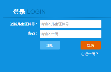 2.首次訪問(wèn)本系統(tǒng)請(qǐng)點(diǎn)擊“注冊(cè)”按鈕,注冊(cè)賬號(hào)為適齡兒童證件號(hào),再次訪問(wèn)請(qǐng)點(diǎn)擊“登錄”按鈕。