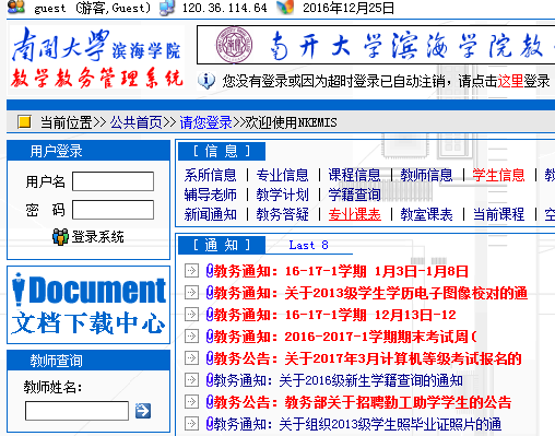 系所信息 | 專業(yè)信息 | 課程信息 | 教師信息 | 學生信息 | 教室信息 http://222.30.63.15/nkemis/南開大學濱海學院教務管理系統(tǒng)