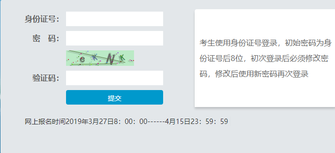網(wǎng)上報名時間2019年3月27日8:00:00------4月15日23:59:59