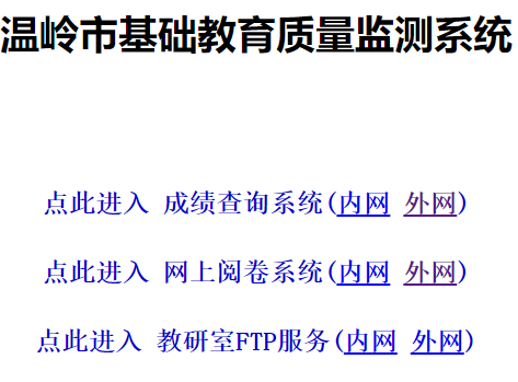 溫嶺市基礎(chǔ)教育質(zhì)量監(jiān)測(cè)系統(tǒng)http://61.153.193.233:8000
