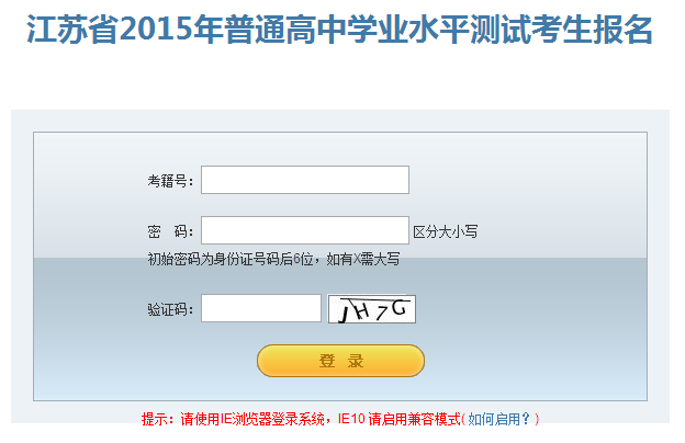 江蘇2015年普通高中學業(yè)水平測試考生報名