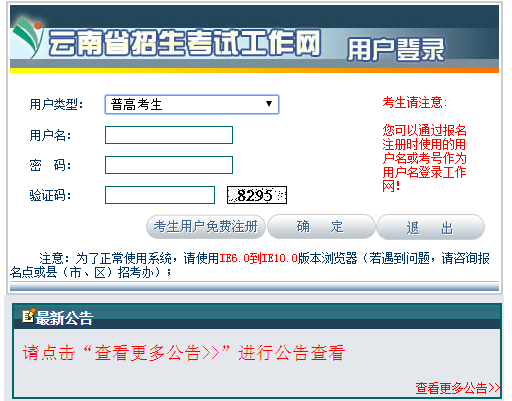 云南高考報名入口http://work.ynzs.cn/ZSGL/Login.jsp